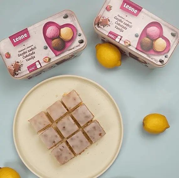 porcijeOsvežilna in lahkotna sladica, ki združuje sočnost limoninih kock in kremasto sladkost Leone sladoleda, je popolna kombinacija za tople dni ali kot sladek zaključek obroka.