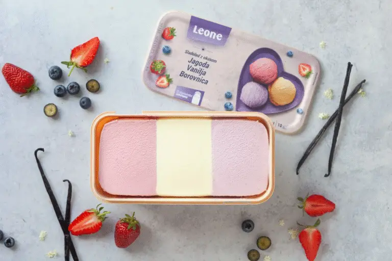 Sladoled jagoda, vanilja, borovnica